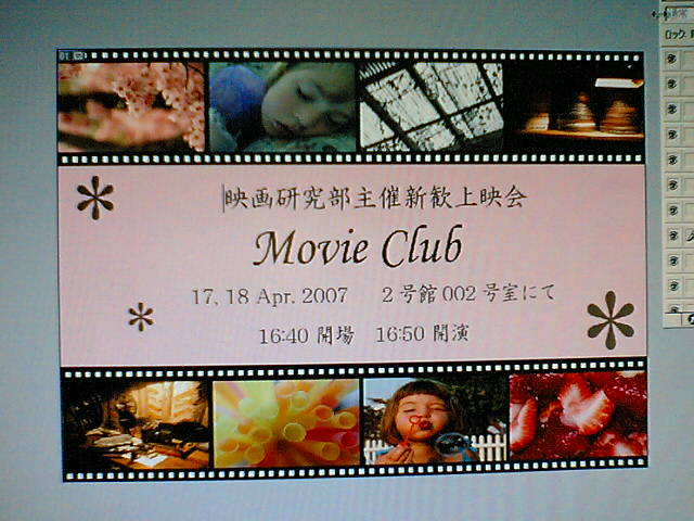 どうも「映研」って女の子にとっては入りづらい部らしく、なかなか入ってこないので、今年の部の目標は「女の子を入れる」です。…切実です。